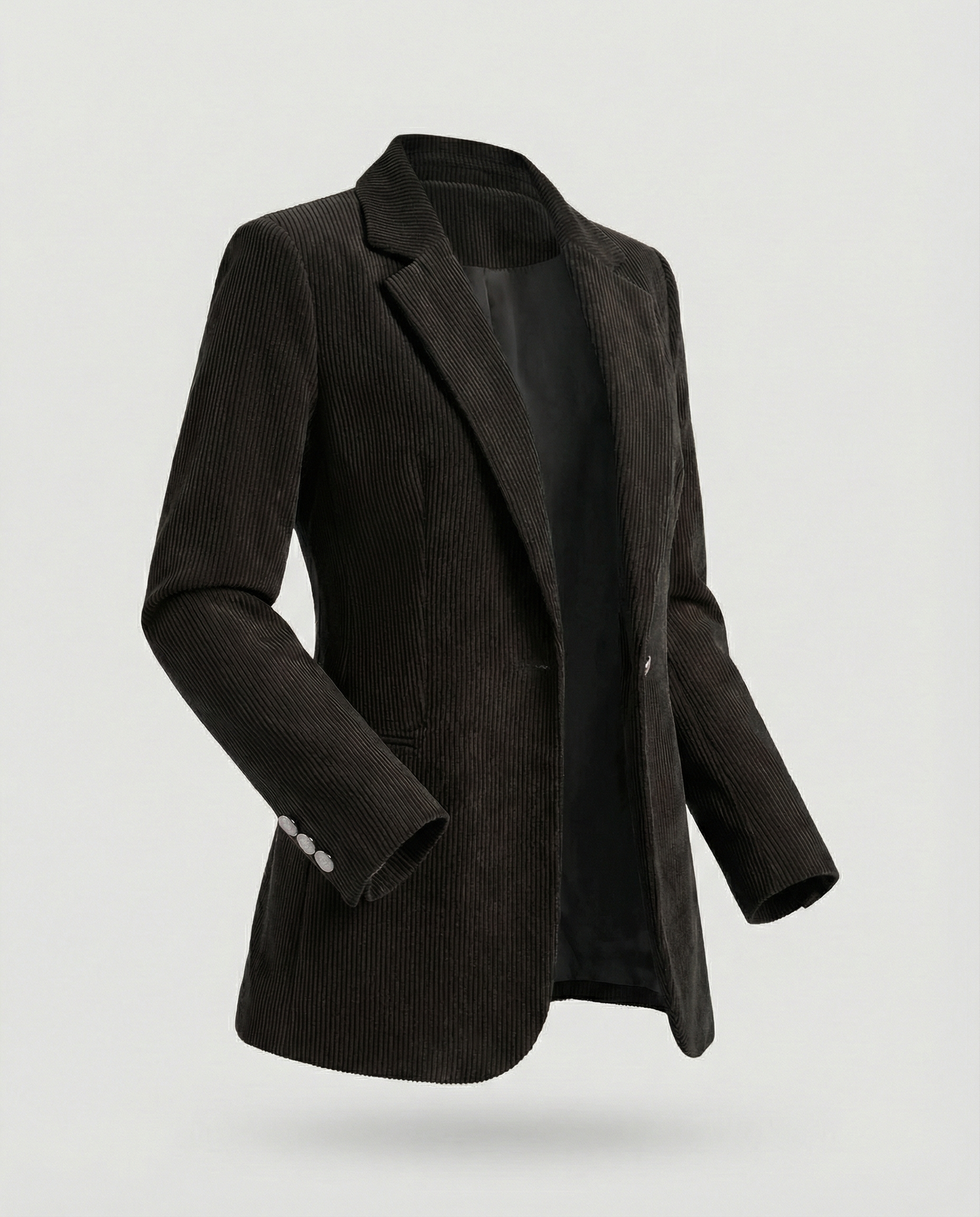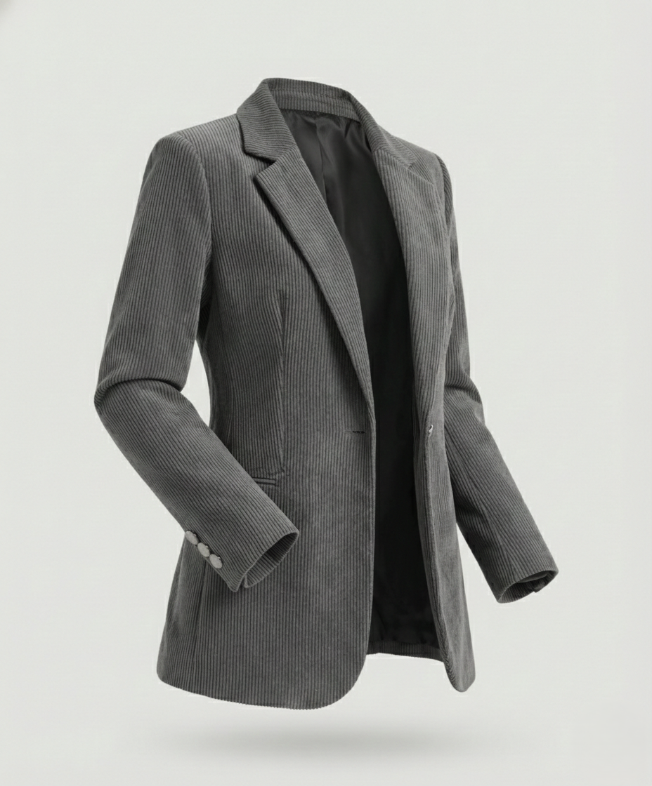 The Cord Blazer for Women exudes elegance by merging high-quality cord fabric with fashionable button details, offering both comfort and numerous styling options.