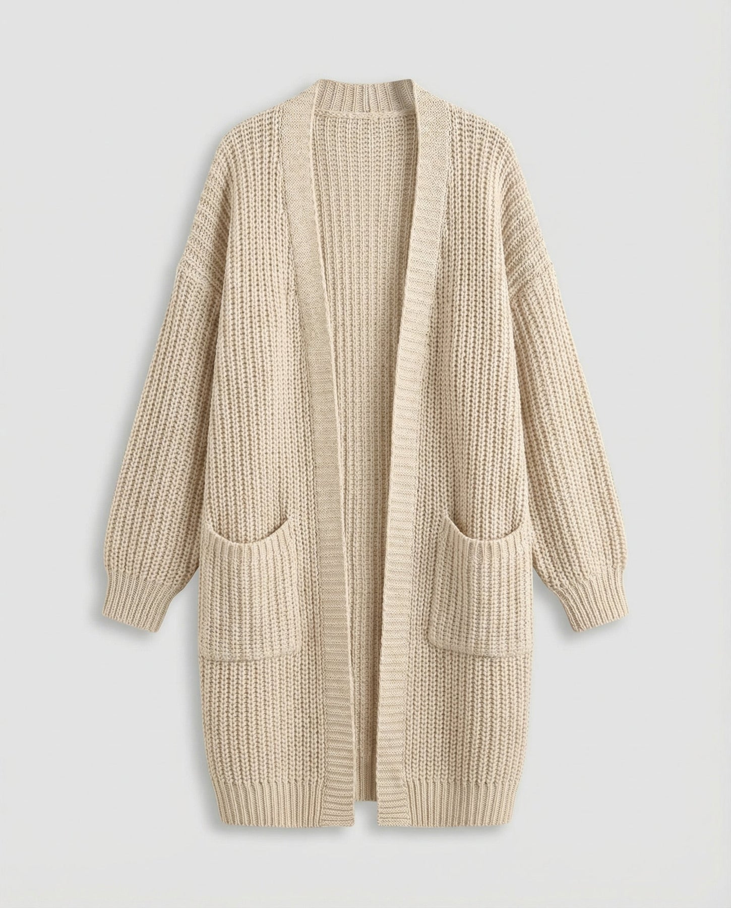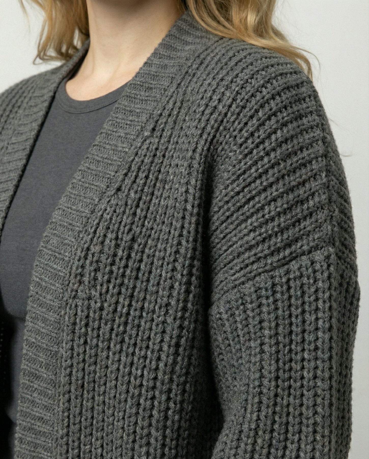 This women's knitted cardigan in an oversized style blends relaxed elegance with exceptional comfort. The soft yarn and generous cut provide freedom of movement and a laid-back wearing experience.