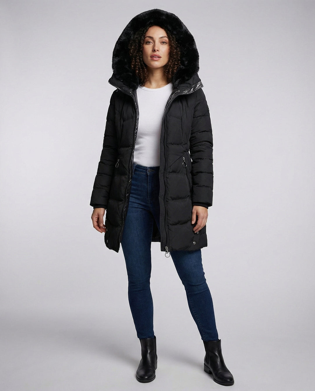 Ladies Fur Hooded Puffer Coat