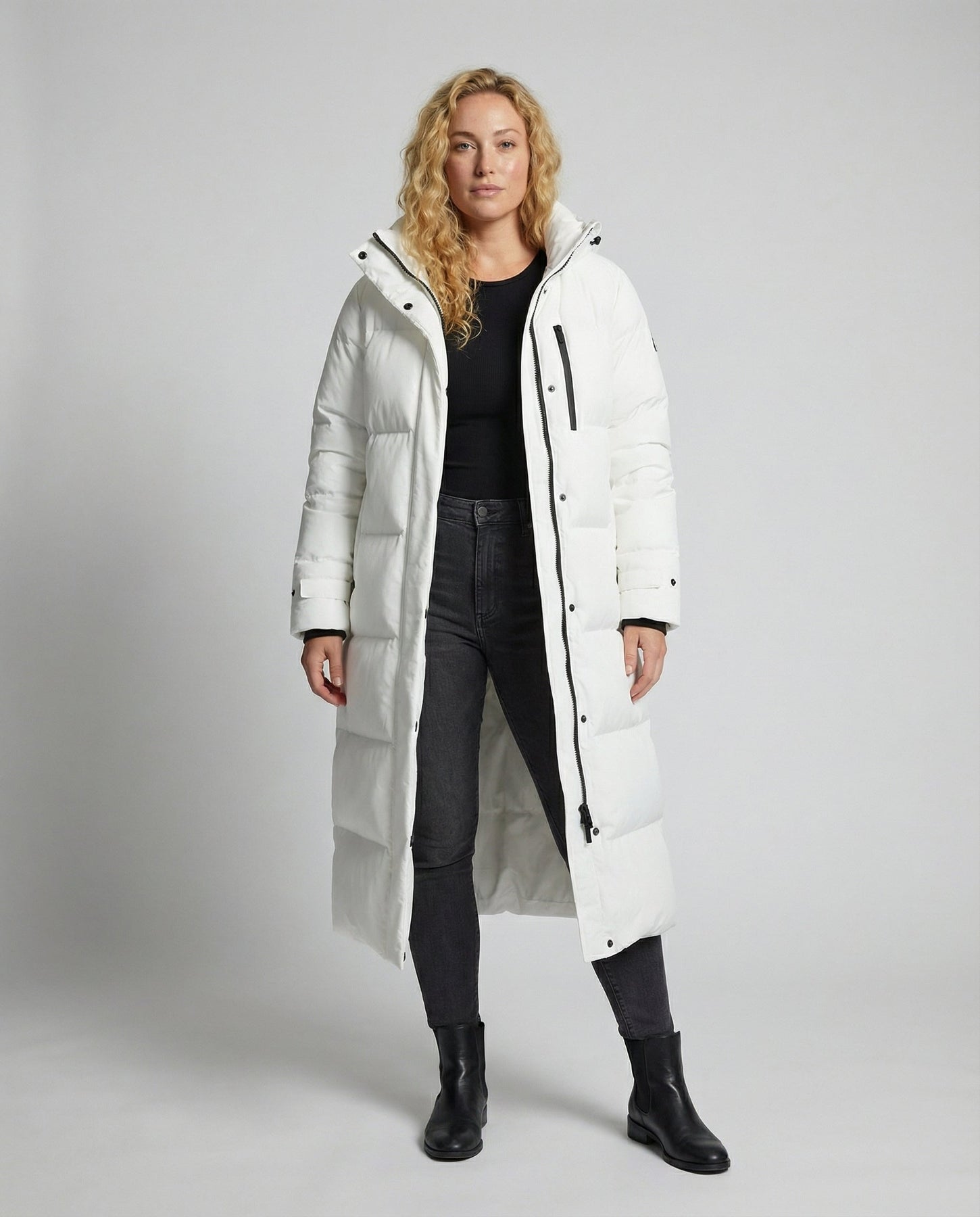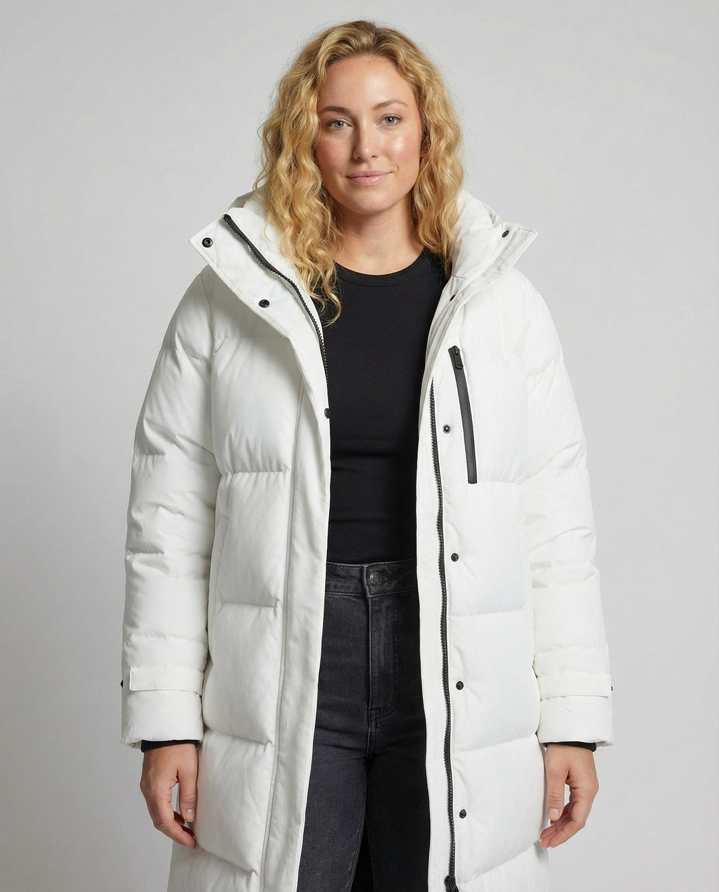 The long Plus Size down coat provides fashionable warmth and comfort for curvy figures. Featuring premium down insulation, weather-resistant outer material, and functional details, it offers reliable pRedection against wind and cold.