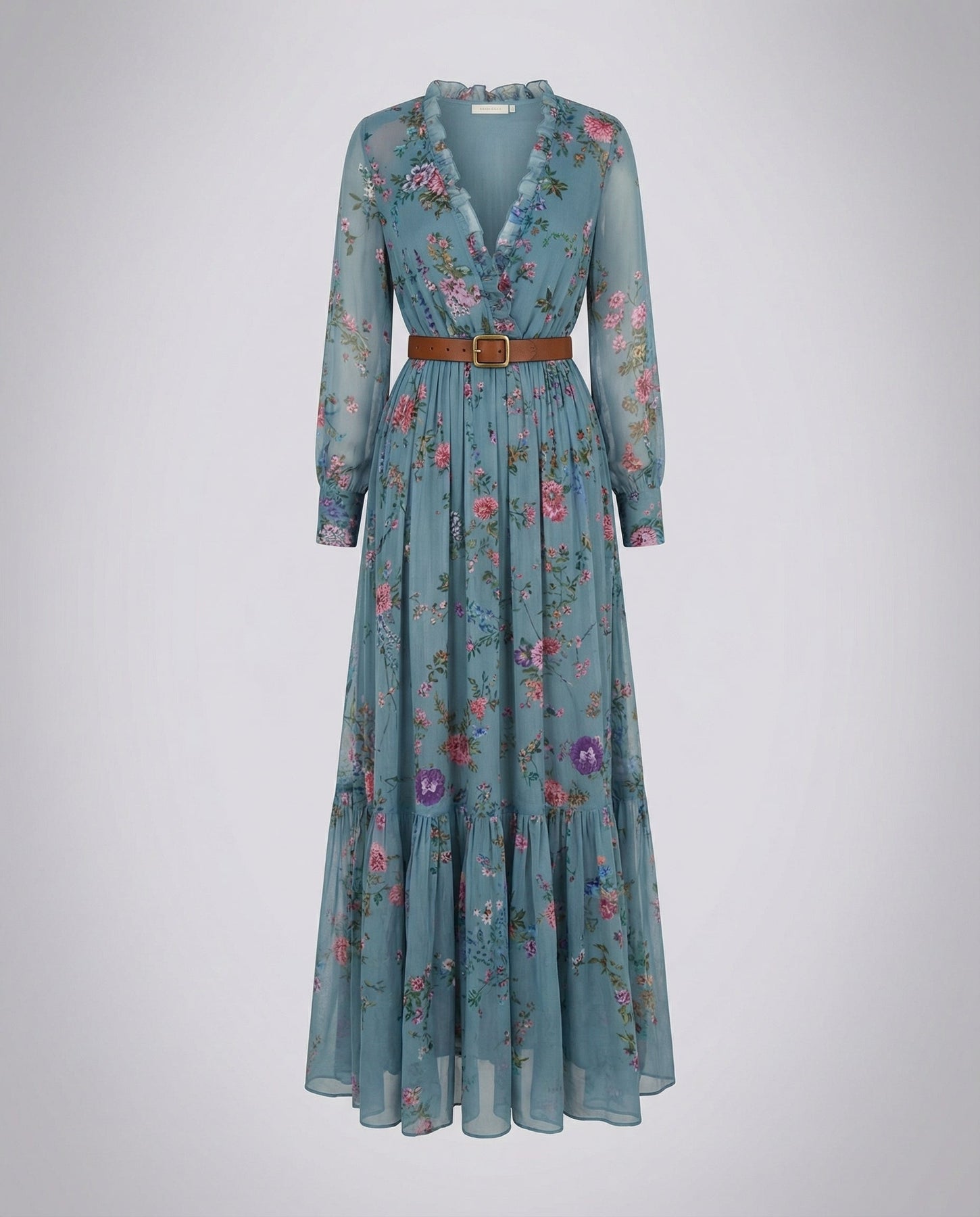 Experience the perfect blend of flowing elegance and laid-back Boho style with the Iricka Maxi Dress from DMT, designed for women who appreciate both fashion and comfort. The deep V-neckline and long sleeves provide the dress with a feminine shape, making it ideal for everyday wear, parties, or special occasions.