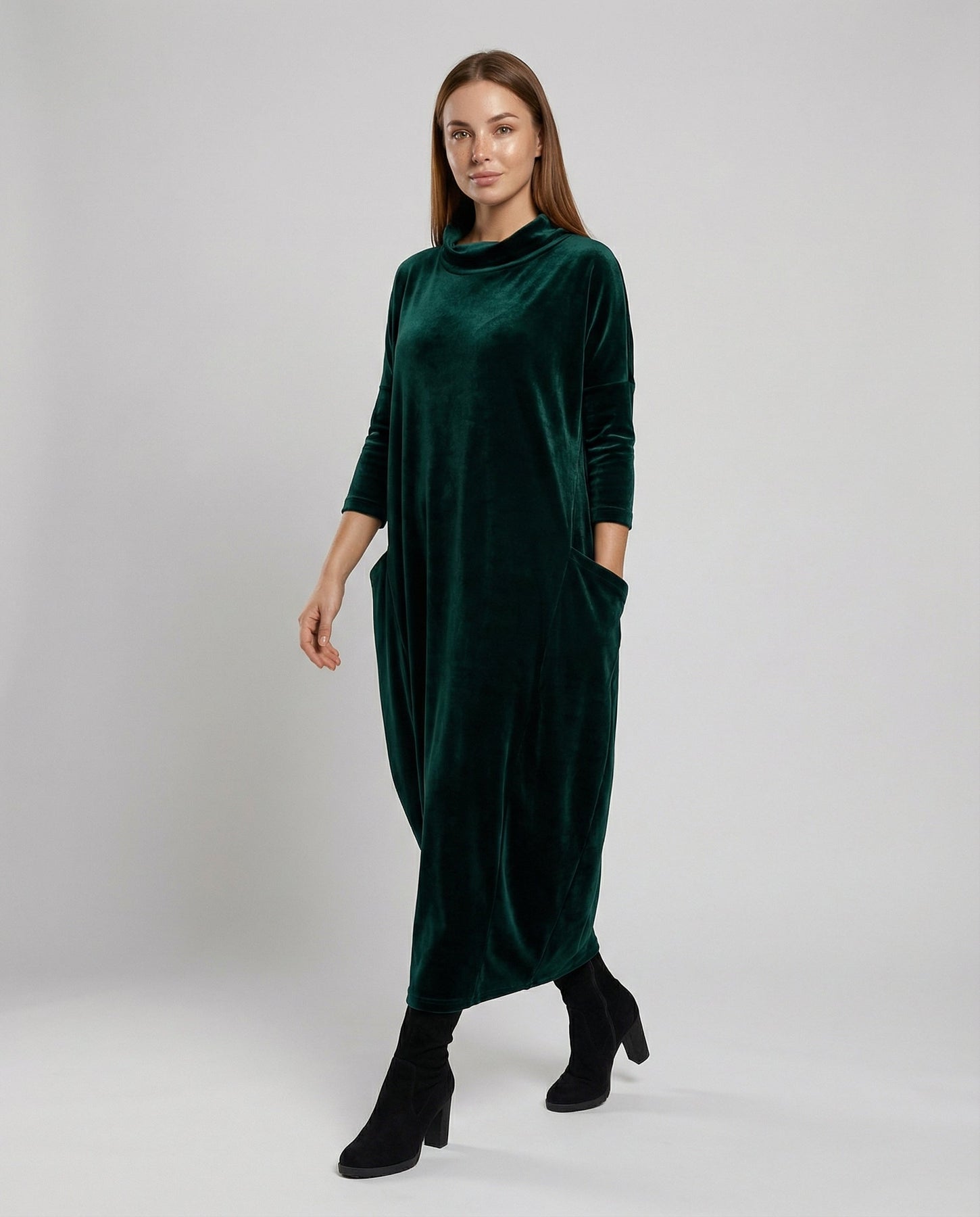 This chic velvet dress for women combines timeless sophistication with everyday comfort. The flattering design provides subtle tummy coverage and creates a stylish silhouette for any event.