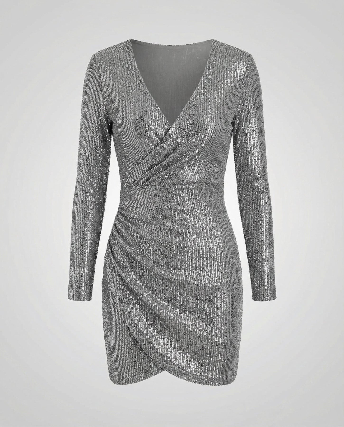 The sequin dress for women blends shimmering elegance with a trendy asymmetrical cut. The V-neckline enhances the silhouette, while the sparkling sequin detailing adds touches of glamour.