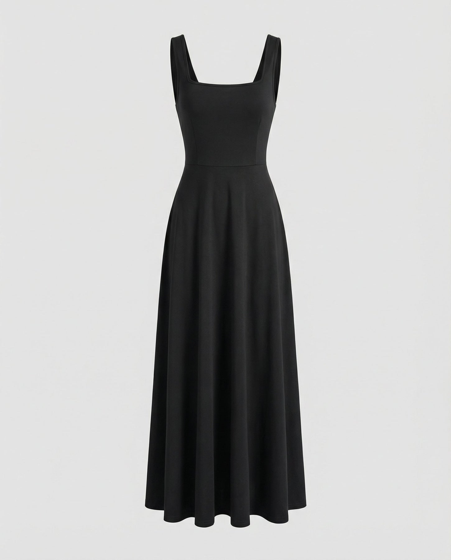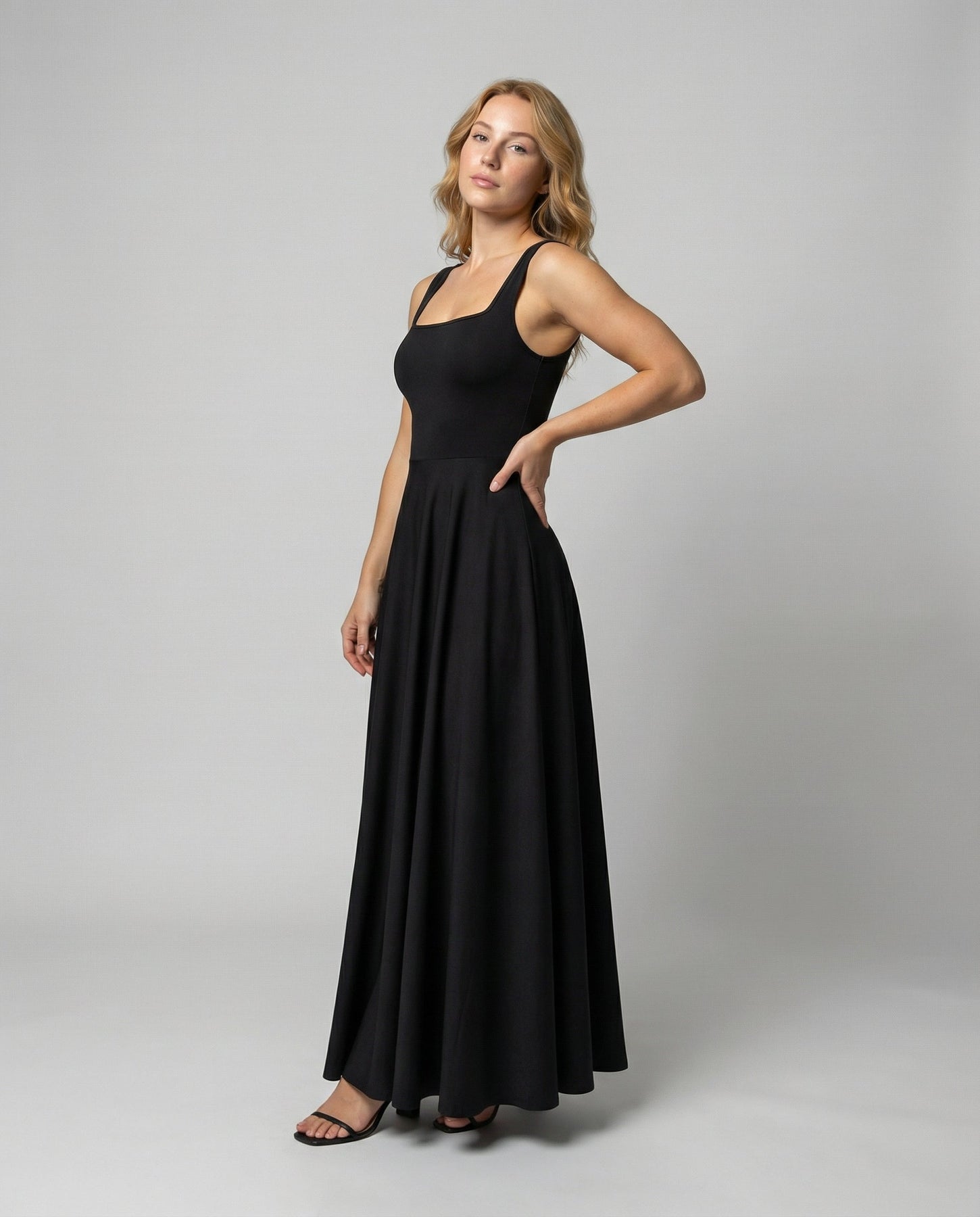 The soft maxi dress for women features a square neckline and a flowing cut that provides elegant comfort. It is perfect for any occasion, from everyday wear to special events.