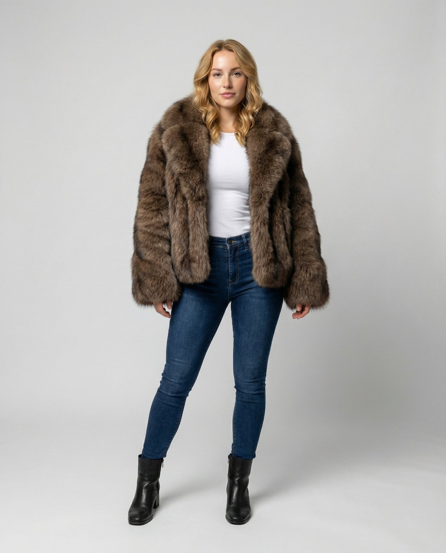 This luxurious soft fur jacket for women combines stylish design with ultimate comfort. The premium synthetic fur offers a delightful wearing experience, while the long, plush sleeves add a fashionable touch.