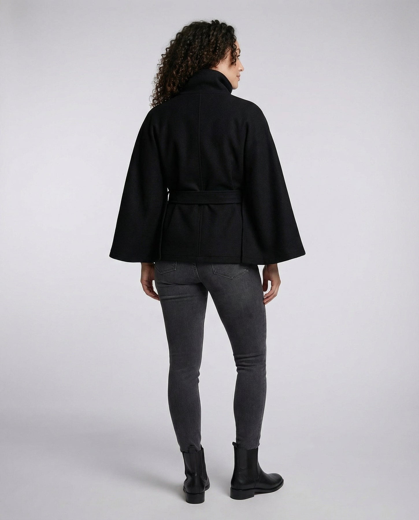 The sophisticated wrap jacket for women combines chic design with exceptional comfort, making it perfect for autumn and winter. The high stand collar adds extra warmth and creates an elegant silhouette, while the generously cut sleeves allow for ample freedom of movement.