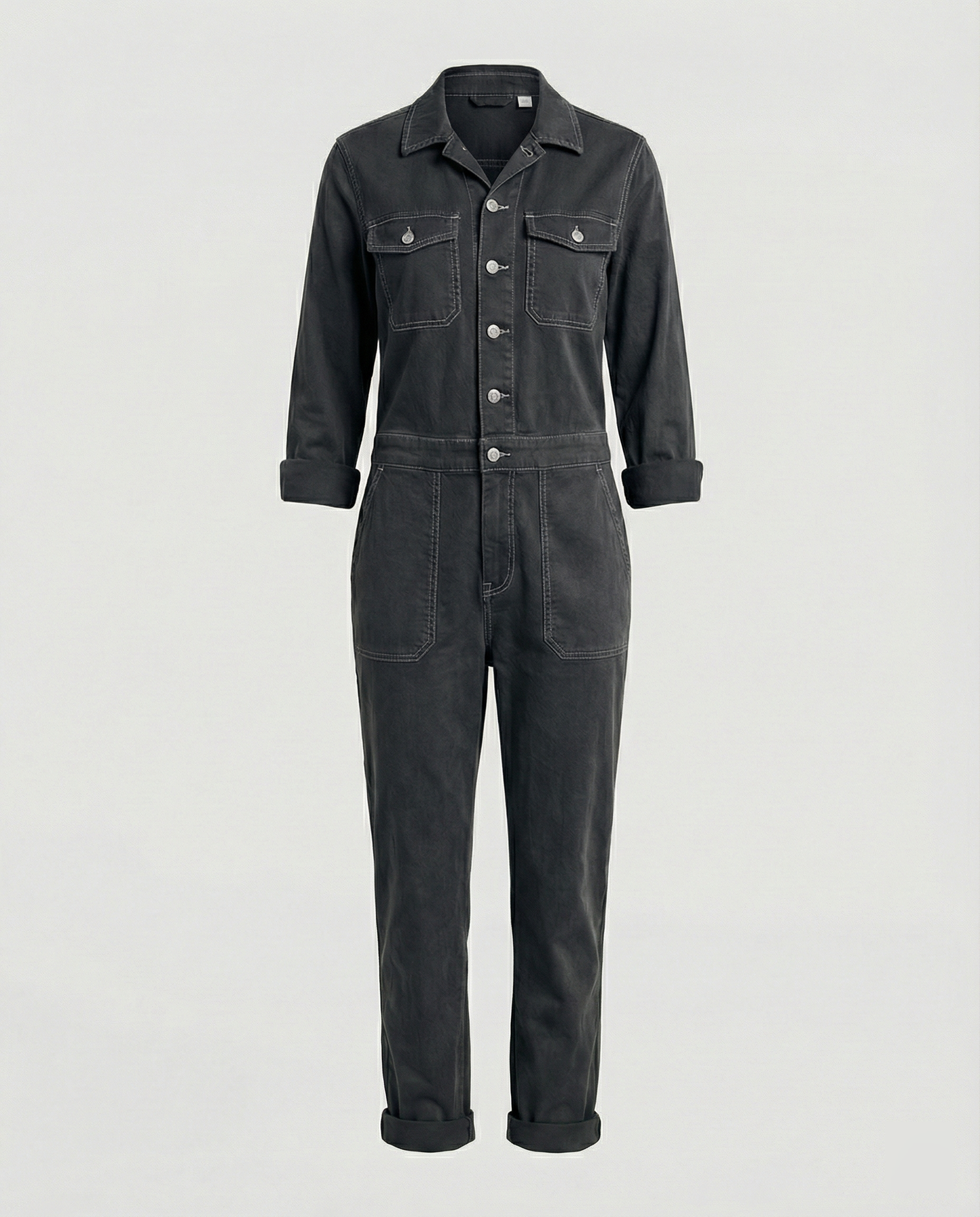 This casual utility jumpsuit for women blends functional design with contemporary urban style. The long sleeves, practical pockets, and comfortable fit make it the perfect companion for everyday wear and leisure activities.