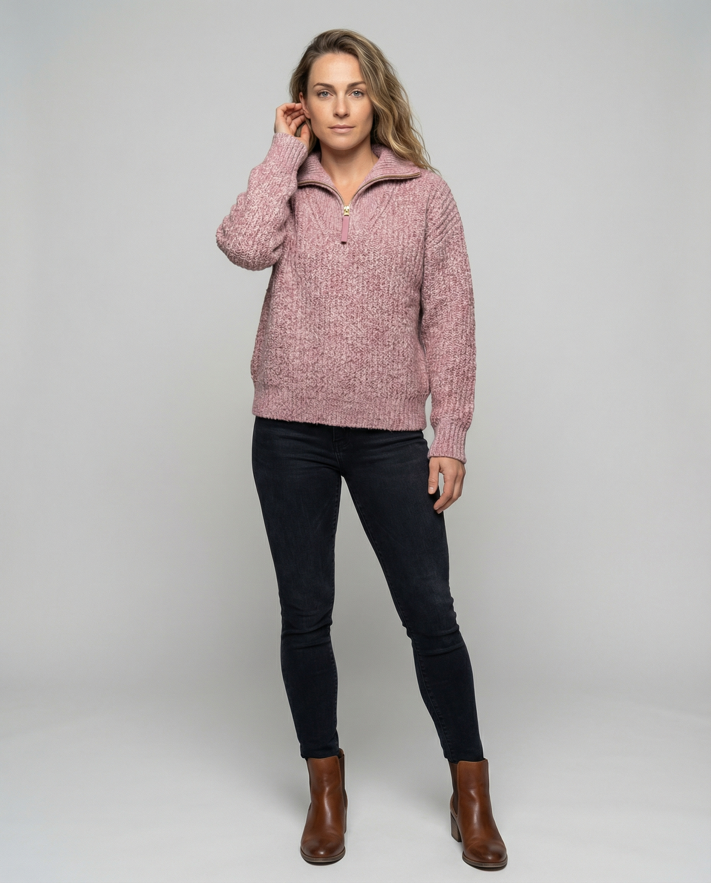 Stay warm and cozy with the women's zip-up sweater from Heidi-Mode. Featuring a relaxed fit, long sleeves, and a convenient front zipper, this sweater allows for great freedom of movement and contemporary comfort for everyday wear. It pairs beautifully with jeans, leggings, or skirts for a casual-chic appearance.