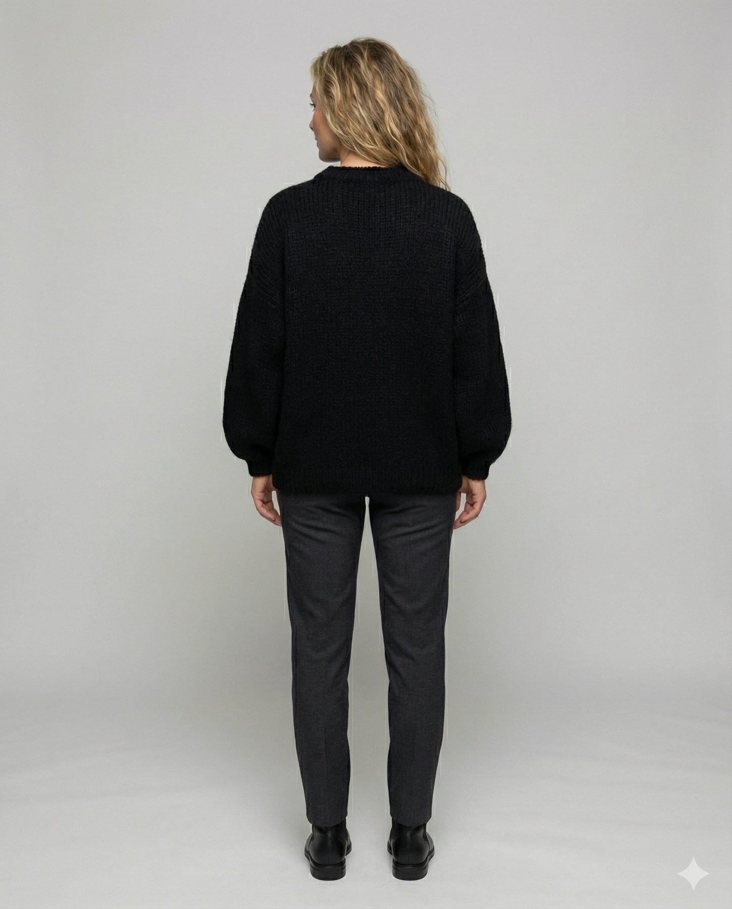 Perfectly matched with jeans or a skirt, this sweater provides a chic appearance on chilly days and brings cozy elegance during the fall.