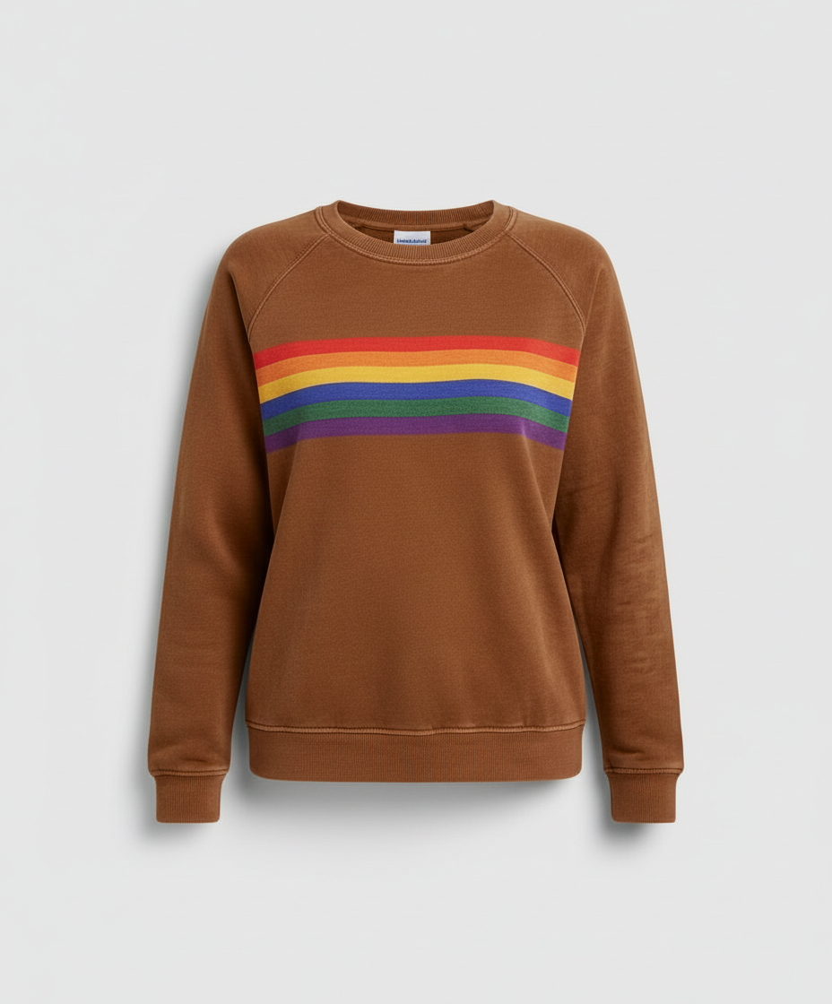 This cozy rainbow sweater for women adds a delightful vintage touch to your wardrobe with its vibrant striped design. The comfortable fabric provides warmth on cooler days and ensures high wearing comfort.
