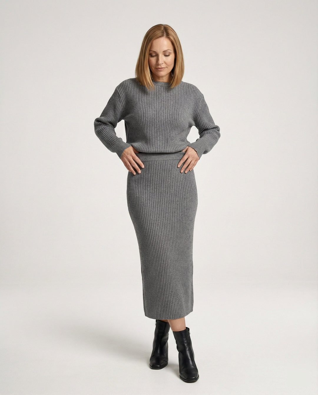Elegant knit set sweater skirt