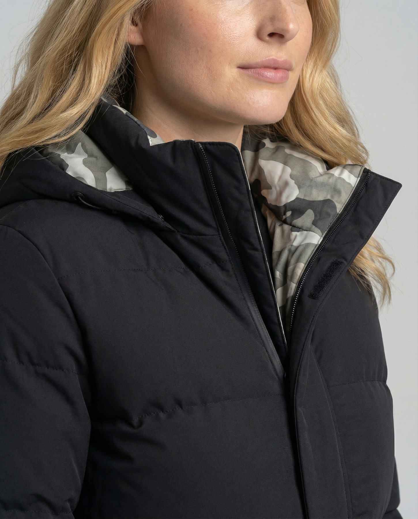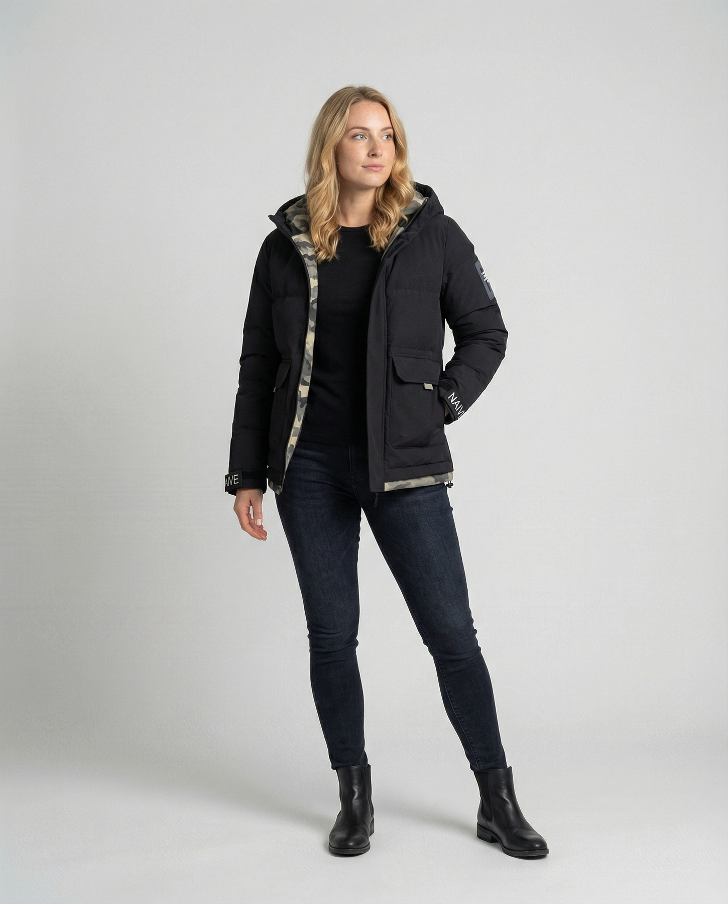The cozy women's winter jacket with a hood keeps you stylish and comfortable even on the coldest days. Its padded design offers excellent pRedection against wind and chill, ensuring a contemporary winter appearance.